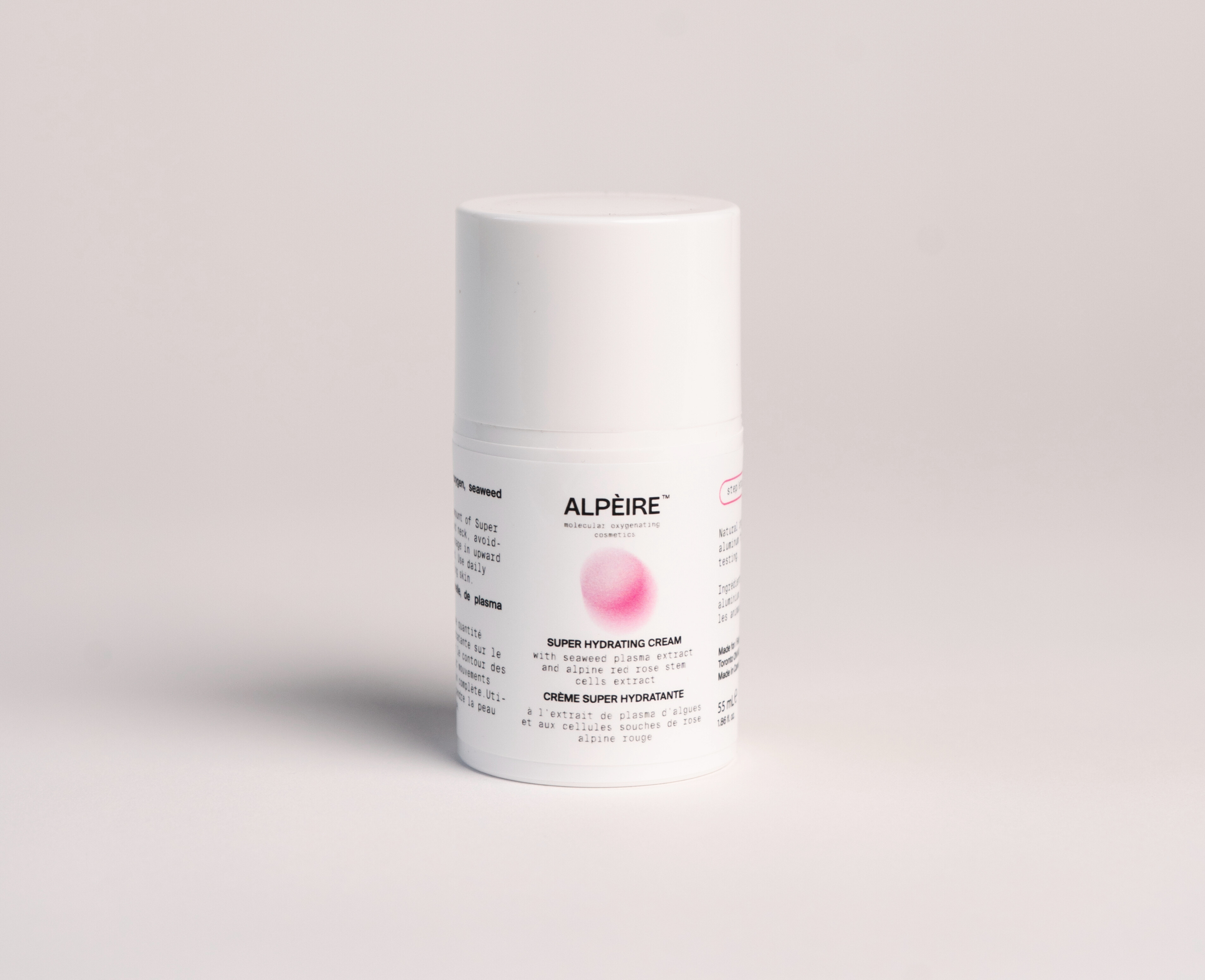 The Super Hydrating Cream is Alpèire’s best kept secret for the deepest hydration. The secret involves the use of Alpine Red Rose, a flower that thrives against all odds – high in the mountains, known for its resilience in the world’s most unforgiving climates. Each spring, it is hand-picked and harvested at dawn in May and June when potency is at its peak. Plant stem cells are carefully derived, delivering rare antioxidant and barrier-strengthening benefits that protect and fortify the skin against daily stress. Alongside it, six concentrated seaweed plasma extracts rich in polysaccharides, amino acids, and trace minerals deliver profound hydration whilst supporting the skin’s natural defense system. Unified together, they restore, stabilize, and hydrate. Oxygen is the world’s smallest molecule. Infused with naturally derived oxygen, it energizes the cells and awakens the complexion enhancing the absorption of the super hydrating secret into the deepest level possible within the skin surface. The texture is smooth yet rich, seamlessly gliding across the skin without heaviness. Proudly made in Canada. Never tested on animals. Our airless packaging ensure you always receive fresh and pure skincare free from oxidation.
